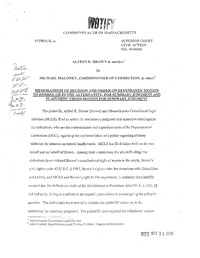 Brown v Maloney Ma Summary Judgment Attorney Visitation Inmate Medical Health Watch 2005