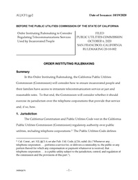 CA Public Utilities Commission, order instituting rulemaking, just phone rates for prisoners, 2020