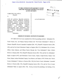 Callaway v. City of Austin, TX, Plain. Order on Motion to Dismiss, Involuntary Blood Draw Procedure, 2015