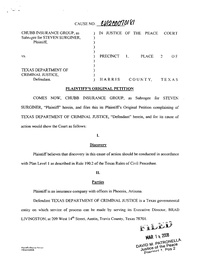 Chubb Insurance Group v Tdcj Tx Plf Orig Petition Car Collision 2008