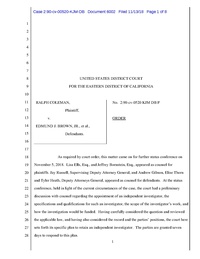 Coleman v. Brown, CA, Order, Inaccurate Data, 2018
