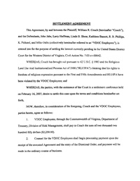 Couch v Jabe Settlement Agreement Religious Rituals 2007