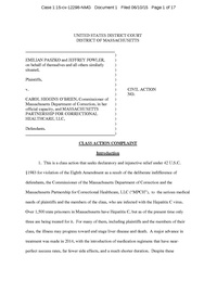 Fowler et al. v. Commissioner of MA Department of Correction, MA, Class Action Complaint, Hepatitis C Medical Malpractice, 2015