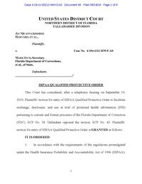 Harvard v. Inch, FL, HIPAA Qualified Protective Order, Cruel and Unusual Punishment, 2019