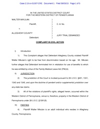 Mikulan v. Allegheny County, PA, Complaint, Age Discrimination FMLA, 2015