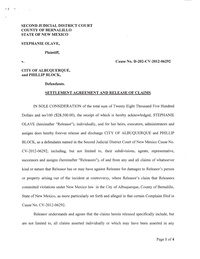 Olave v. City of Albuquerque, NM, Settlement, Reckless Driving, 2013