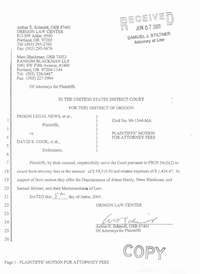 Prison Legal News v. Cook, OR, Motion for Attorney's Fees, Censorship, 2001