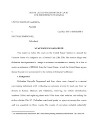 USA v. Simpson-el, KS, Order to Amend Judgment Terms, Basketball Injury Restitution, 2016