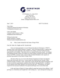 Wells v. Cascade County, MT, Demand Letter, Wrongful Death, 2019