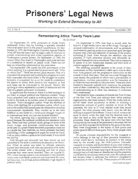 On September 13, 1978, prisoners at Walla Walla celebrated Attica Day by holding a sparsely attended memorial talent show in the prison's auditorium. On September 13, 1979, the Washington Coalition Against Prisons (WaCAP) braved heavy rain to stage a rally in Olympia to protest overcrowding and other ...