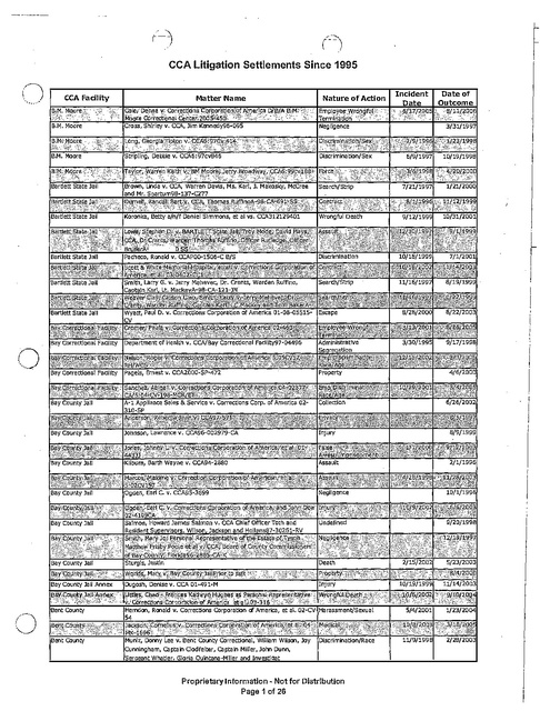 CCA Litigation Settlements Since 1995, CCA, 2008