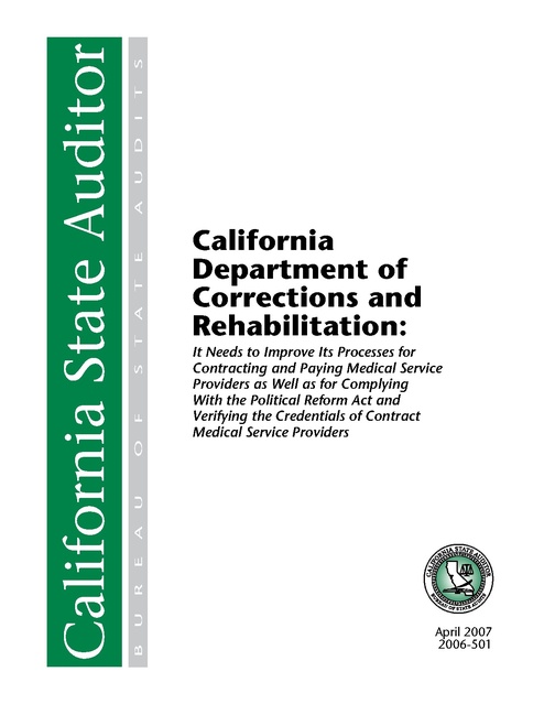 CDCR Audit - Needs to Improve Its Processes for Contracting and Paying Medical Service Providers, CA State Auditor, 2007