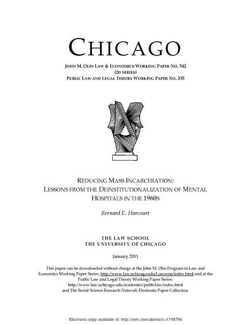 Harcourt Univ of Chicago Law School Reducing Mass Incarceration Lessons From the Deinstitutionalisation of Mental Hospitals in the 1960s 2011