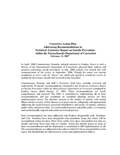 Hayes Report Ma Doc Corrective Action Plan 2007
