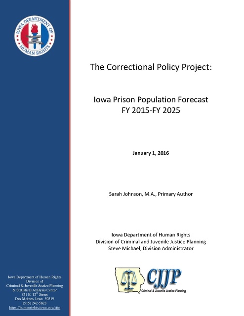 IA Prison Population Forecast 2015-2025, Department of Human Rights, 2016