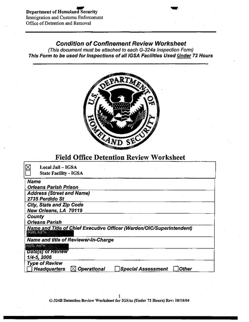 ICE Detention Standards Compliance Audit - Orleans Parish Prison, New Orleans, LA, ICE, 2006