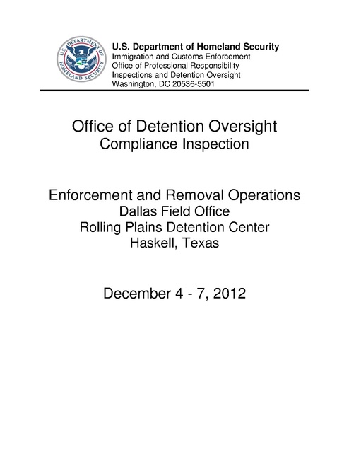 ICE Detention Standards Compliance Audit - Rolling Plains Detention Center, Haskell, TX, ICE, 2012