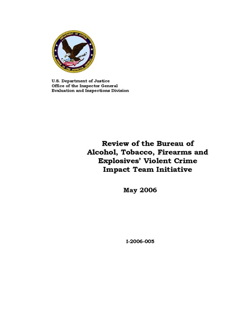 Review of the Bureau of Alcohol, Tobacco, Firearms and Explosives’ Violent Crime Impact Team Initiative, OIG, 2006