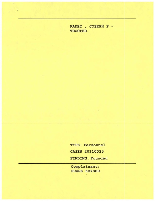 New York State Police, Trooper Joseph P. Kaoet Letter of Censure, 2011