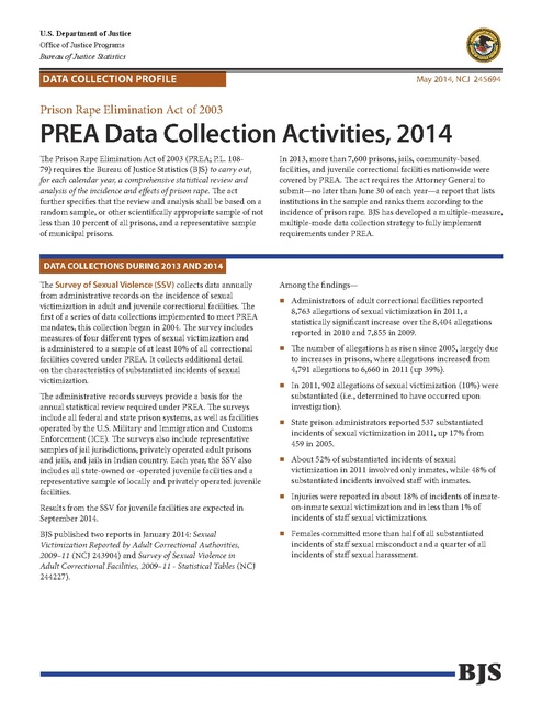 PREA Data Collection Activities 2014, DOJ BJS, 2014