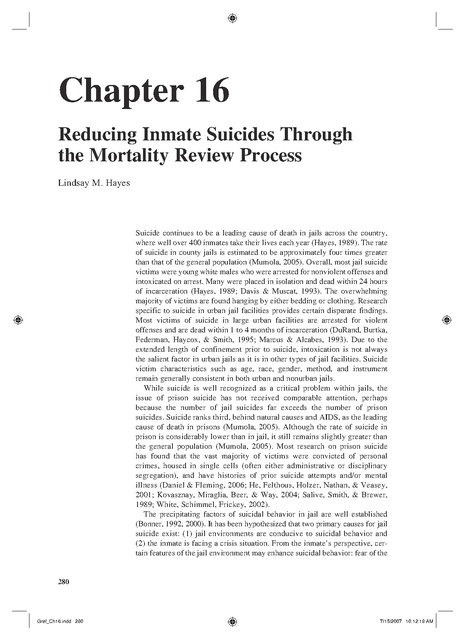 Reducing Inmate Suicides Through the Mortality Review Process Ch16 Lindsay Hayes