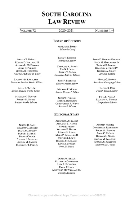 SOUTH CAROLINA LAW REVIEW VOLUME 72 2020–2021 NUMBERS 1–4 BOARD OF EDITORS MORGAN E. SPIRES Editor-in-Chief RYAN T. ROMANO Managing Editor JORDAN T. DEJACO ROBERT D. HOLLAND III ANDREA L. MCDONALD ANNA C. PARHAM JESSICA B. THOMPSON Associate Editors-in-Chief CAROLINE K. AVANT TIM N. LORICK EMERY T. SLOAN Executive Articles Editors JALEN D. BROOKS-KNEPFLE HUGH M. GALLAGHER IV THOMAS B. IANDOLI GRAYDON V. OLIVE IV KRISTEN A. SOUCY Articles Editors ZACHARY B. RANDOLPH Executive Student Works Editor JOHN P. BOZEMAN Senior Articles Editor GRACE G. BROWN Associate Managing Editor KELLY L. TAYLOR Senior Student Works Editor MICHAEL P. MORAN Senior Research Editor HUNTER R. POPE Fourth Circuit Editor MADISON C. GUYTON ROBERT M. HURST Student Works Editors NASH W. PARHAM MILES J. REYNOLDS CHRISTOPHER R. WRAY Research Editors SUHA S. NAJJAR ZACHARY A. TURNER Symposium Editors EDITORIAL STAFF NIKESH D. AMIN WILLIAM G. ARNOLD DIANA M. AUGUST DOLE P. BAKER III BRIANA CACACE SYDNEY J. DOUGLAS AMELIA M. FARMER ELIZABETH T. FRENCH ALEXANDRA C. GLUNT ASHLEIGH B. HARRIS RYAN P. HENRY WILLIAM E. HILGER ROBERT H. LEVIN MARK P. LEWALLEN II STEPHEN J. LEWIS DIXIE N. MCCOLLUM RYAN A. MOSSER PAUL N. NYBO ADAM P. REICHEL DANIELLE A. ROBERTSON ROGER M. STEVENS ANNA C. TUCKER HANNAH L. WARD JORDAN M. WAYBURN SAMUEL C. WILLIAMS MONTANA N. YORK DEREK W. BLACK ELIZABETH CHAMBLISS LISA A. EICHHORN PHILIP T. LACY MARTIN C. MCWILLIAMS JR. Faculty Advisors Electronic copy available at: https://ssrn.com/abstract=3890852 INMATES MAY WORK, BUT DON’T TELL SOCIAL SECURITY Stephanie Hunter McMahon I. INTRODUCTION..................................................................................... 757 II. PRISON LABOR ..................................................................................... 760 III. MECHANICS OF THE PAYROLL TAX SYSTEM........................................ 765 A. Taxes Under FICA ........................................................................ 765 1. In General .............................................................................. 765 2. Prison Specifics ...................................................................... 767 B. Benefits of FICA............................................................................ 768 1. In General .............................................................................. 768 2. Prison Specifics ...................................................................... 773 IV. PROPOSAL ............................................................................................ 777 V. CONCLUSION ........................................................................................ 781 I. INTRODUCTION Much of the public is aware that the United States has the highest incarceration rate in the world, and as a result of films like 13th, When They See Us, and Just Mercy, many recognize the inequities of mass incarceration.1 Therefore, it may be unsurprising that “[c]ontact with the criminal justice system” comes with many negative long-term consequences, including restrictions on employment, housing, and voting, as well as negative impacts on physical and mental health.2 It should also be unsurprising that these negative consequences affect some communities more than others.3 1. Inst. for Crime & Just. Pol’y Rsch. & Birbeck Univ. of London, Highest to Lowest Prison Population Rate, WORLD PRISON BRIEF, https://www.prisonstudies.org/highest-tolowest/prison-population-total?field_region_taxonomy_tid=All [https://perma.cc/FU63-82D K]. 2. Sarah K.S. Shannon et al., The Growth, Scope, and Spatial Distribution of People with Felony Records in the United States, 1948–2010, 54 DEMOGRAPHY 1795, 1796 (2017). 3. See generally Wendy Sawyer, Visualizing the Racial Disparities in Mass Incarceration, PRISON POL’Y INITIATIVE (July 27, 2020), https://www.prisonpolicy.org/blog/20 20/07/27/disparities/ [https://perma.cc/G3JE-4W2H] (analyzing racial disparities in the criminal justice system). 757 Electronic copy available at: https://ssrn.com/abstract=3890852 758 SOUTH CAROLINA LAW REVIEW [VOL. 72: 757] One specific issue that has gained attention is the employment status of inmates engaged in prison labor.4 The Thirteenth Amendment made involuntary servitude unconstitutional “except as a punishment for crime whereof the party shall have been duly convicted,” and a long history of prison labor has resulted.5 The desire to encourage inmate labor is, if anything, increasing. The First Step Act, signed into law on December 21, 2018, requires that the Attorney General submit a report to Congress assessing the Bureau of Prisons’ efforts to enable 75% of the eligible minimum and lowrisk offenders to participate in a prison work program for not less than twenty hours per week.6 The goal is to require all able inmates to participate in some form of work assignment.7 How that goal is interpreted depends on whether the prison is federal or state, whether the prison is public or private, and whether the institution has a relationship with local private employers.8 Despite a prevailing requirement that inmates work and despite them being forced to work under threat of punishment, inmates are not “employees” or “workers” in the commonly understood sense.9 Through judicial interpretation of the law, inmates are denied the protections afforded for workers under the Fair Labor Standards Act.10 Consequently, because their 4. Darius Rafieyan & Cardiff Garcia, The Uncounted Workforce, NPR: THE INDICATOR PLANET MONEY (June 29, 2020), https://www.npr.org/transcripts/884989263 [https://perma.cc/N3VJ-VUDA]; Whitney Benns, American Slavery, Reinvented, THE ATLANTIC (Sept. 21, 2015), https://www.theatlantic.com/business/archive/2015/09/prisonlabor-in-america/406177/ [https://perma.cc/5829-NGRV]; Daniel Mortiz-Rabson, “Prison Slavery”: Inmates Are Paid Cents While Manufacturing Products Sold to Government, NEWSWEEK (Aug. 28, 2018), https://www.newsweek.com