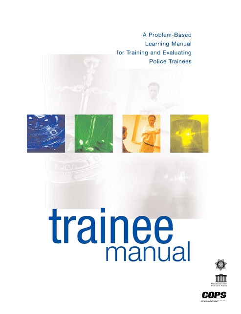 A Problem-Based Learning Manual for Training and Evaluating Police Trainees trainee manual A Problem-Based Learning Manual for Training and Evaluating Police Trainees This document is intended for use in the post-academy training of police trainees. It is a companion to these other training materials in the Police Training Officer Series: PTO Manual Training Standard Overview and Introduction This project was supported by grant #2001CK-WX-K038, awarded by the Office of Community Oriented Policing Services, U.S. Department of Justice. Points of view or opinions contained within this document are those of the authors and do not necessarily represent the official position or policies of the U.S. Department of Justice or members of the Police Executive Research Forum. acknowledgements The COPS Office would like to thank the Reno Police Department and the Police Executive Research Forum (PERF) for helping to develop this model Police Training Officer (PTO) Program. The model presents an alternative to current field training officer programs. It is designed for training new officers and incorporates contemporary adult educational methods and a version of problem-based learning (PBL) adapted for police. The model is based on community policing and collaborative problem-solving principles. It addresses the traditional duties of policing, but in the context of specific neighborhood problems. This new model challenges recruits to think creatively and to use community resources to respond to crime and disorder. Particular thanks go to the members of the core team that developed the program, which include Jerry Hoover, Chief of Police, Reno Police Department; Ronald Glensor, Ph.D, Deputy Chief, Reno Police Department; Gregory Saville, Research Professor, University of New Haven; Gerry Cleveland, Police Training Consultant; Lisa Carroll, former Research Associate with PERF; Steve Pitts, Commander, Reno Police Department; Dave Ponte, Officer, Reno Police Department; and Jim Burack, Chief of Police, Milliken (CO) Police Department (formerly with PERF). We also extend our thanks to Ellen Scrivner, Ph.D., former Deputy Director for Community Policing Development at the COPS Office, for her support and guidance in developing this program, as well as all of the training officers who participated—particularly those in the Reno Police Department—for their valuable assistance. In addition to the Reno Police Department, we also extend our thanks to the following five agencies that participated in the field-testing phase of the PTO Training Curriculum. Their input and ideas helped shape the content of this model program. They include the Savannah (GA) Police Department; the Colorado Springs (CO) Police Department; the Lowell (MA) Police Department; the Richmond (CA) Police Department; and the Charlotte-Mecklenburg (NC) Police Department. preface C ommunity-Oriented Policing and Problem Solving (COPPS) is quickly becoming the philosophy and daily practice of progressive police agencies around the world. COPPS lies at the heart of contemporary policing. The problemsolving process, which is the core of COPPS, strikes at the roots of crime rather than hacks at its branches. It provides officers with a more comprehensive understanding of problems through indepth analysis and guides them in the development of tailored and collaborative response strategies. Police administrators have long recognized the ineffectiveness of incident-driven policing, as well as the economic insensibility of random patrol, rapid response and postcrime investigation. Racing from call to call, in spite of its appeal on television, does not promote effective policing. Responding to the same domestic dispute nightly or citing the same disorderly youths gathering in a park are ineffective strategies for resolving community problems. This manual presents a Police Training Officer (PTO) program for new officers, which incorporates contemporary adult educational methods and a version of problembased learning (PBL) adapted for police. This approach to training provides a foundation for lifelong learning that prepares the new officer for the complexities of policing today and in the future. “ COPPS lies at the heart of contemporary policing ” 1 The term “police” is meant to refer to all law enforcement practitioners at municipal, county and state agencies. trainee manual preface PBL is well grounded in the fields of medicine and education, where it facilitates the transfer of knowledge. Similarly, in policing, trainees need to learn much more than just laws and police procedures. They must also understand how to apply their academy knowledge effectively when dealing with individuals and issues within a community. This manual is not based on developing mechanical training or rote skills commonly found in traditional field training officer (FTO) programs. While static skills are a necessity in police work and are integral to any training program, they constitute only one set of many skills needed in contemporary policing. This manual focuses on the officer’s learning capacity and problem-solving skills as opposed to his or her rote performance capabilities. This manual offers trainees an invaluable tool for learning to perform their duties and responsibilities in a more efficient, effective and equitable manner. As demands on police continue to increase, agencies must provide officers with the resources and the training to fulfill their expanded role. It also makes good sense to have police trainees thinking about their roles and responsibilities as they approach specific problems in their daily work. Problem solving is an integral part of police work and requires a creative and flexible method of thinking - thinking that the PTO model encourages. “ static skills constitute only one set of many skills needed in contemporary policing trainee manual ” preface TERMS REFERENCED IN THE TEXT BOE Board of Evaluators COPPS Community-Oriente