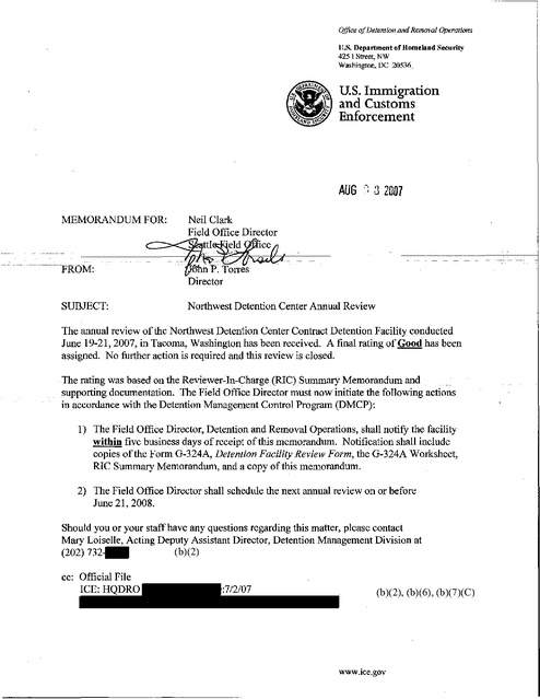 Wa Northwest Detention Center Ice Facility Audit 2007