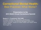 Correctional Mental Health Best Practices, 9th Cir Corrections Summit, 2015 Correctional Mental Health: Best Practices: What Works? Presentation to the 2015 Ninth Circuit Corrections Summit Robert L Trestman PhD MD Professor of Medicine, Psychiatry, and Nursing Executive Director, Correctional Managed Health Care Interim Director, Center for Public Health and Health …