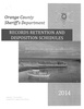 Records Retention and Disposotion Schedules, Orange Co Sheriff's Dept. 2014 ‘V / Orange County Sheriffs Department h,tho,’a by: t(i)t)l 1;t,i :1.vl.c11nt iIU17’iS /)1,’LrI! Suppit Cs t)i1ivern , Ity ---- CONTENTS • • • • BOARD RESOLUTION INTRODUCTION CAUTION ABBREVIATIONS & ACRONYMS GUIDE RECORDS RETENTION AND DISPOSTION SCHEDULES: ADMINSTRATIVE SERVICES COMMAND …
