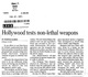 Taser Hollywood Testing 2001 Miami, Fl Herald MiamI Milt Ar!l8 o 3~18,Bdn Tuesday FEB 27. 2001 \\\\11 \\11\11111111111\\11111\\ II! I1111 '11846 1I[JJ[IIlpRESS CLIPPINGS Hollywood tests non-lethal weapons , BY RODRIGO ALONSO cables. The jolt immobilizes the EI Nuevo Herald subject and can last anywhere from one second to five' s'ec-' …