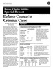 Defence Counsel in Criminal Cases, DOJ BJS, 2000 U.S. Department of Justice Office of Justice Programs Bureau of Justice Statistics Special Report November 2000, NCJ 179023 Defense Counsel in Criminal Cases By Caroline Wolf Harlow, Ph.D. BJS Statistician Almost all persons charged with a felony in Federal and large State …