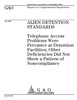Alien Detention Standards, U.S. GAO, 2007 United States Government Accountability Office GAO Report to Congressional Requesters July 2007 ALIEN DETENTION STANDARDS Telephone Access Problems Were Pervasive at Detention Facilities; Other Deficiencies Did Not Show a Pattern of Noncompliance GAO-07-875 July 2007 ALIEN DETENTION STANDARDS Accountability Integrity Reliability Highlights Highlights of …